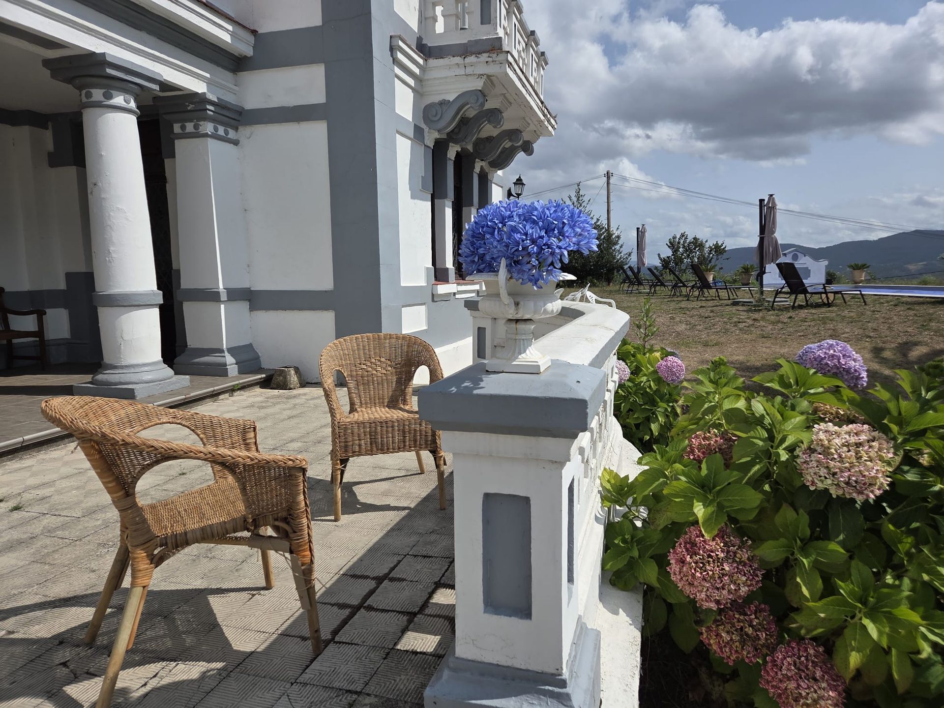 El verdadero lujo de Villa Alicia se extiende más allá de sus muros. La propiedad está enclavada en una finca de 6.000 metros de jardines cuidados, un oasis de tranquilidad y belleza natural. Las amplias terrazas se asoman a los valles y montañas, ofreciendo vistas panorámicas espectaculares que son el telón de fondo perfecto para cualquier momento del día. La joya de nuestro exterior es, sin duda, la piscina de temporada, climatizada para alargar el disfrute. Junto a ella, la zona de solárium con tumbonas y la barbacoa completan un espacio exterior diseñado para el relax, el ocio y la creación de recuerdos imborrables. Si buscas un espacio aún más versátil, conoce nuestra Sala Polivalente.